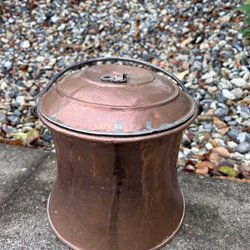 En kopparkittel med tre ben och handtag.16 cm hög 20 cm diameter