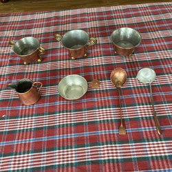 Två kopparlock med handtag. Ett lock är märkt med ”8.5 L”Skultuna och ett annat med ”P.H.