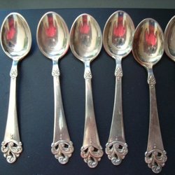 Silversked med mönster på handtaget. Stämplad med MEMA L trekronor S 19.