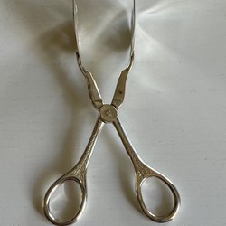 Serveringstång i silverfärg med dekorativa handtag. Tången har en klassisk design och är lämplig för servering av olika rätter.