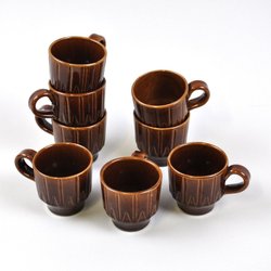 Bruksslitage, inklusive en del fläckar och ytsmuts. Gräddkannan har vita märken på undersidan. Kaffekannan har en buckla på ena sidan och locket sitter något löst. Sockerskålen står lite snett. Var god se bilder.