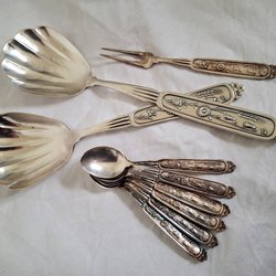 2 vackra kaffeskedar i nysilver med stämpel