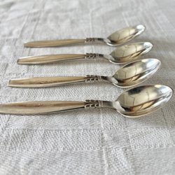 Här har du 6 st dessertskedar och 4 st teskedar i nysilver. Mått och skick enl bilderna