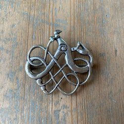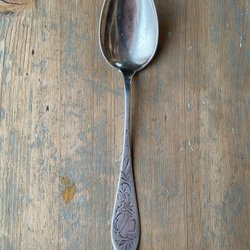En äldre silversked med dekorativ nordsvensk design.