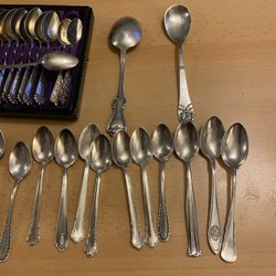 Silverbestick med olika mönster.