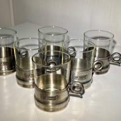 2 st glöggmuggar i tenn. Gränna Hantverk. Svenskt tenn. 4 cm höga, 4,5 cm diameter. Använt skick, små märken finns.