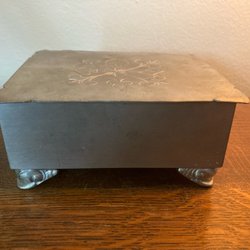 Ett äldre pennskrin med mönster på locket