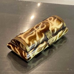 Mini ask med reptilskinn mässing läder Vintage pillerbox