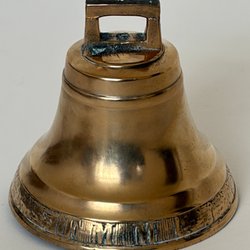 Fin gammal malmklocka där handtaget är en pojke. Väger 105 gram. Det vita som syns är putsrester.
