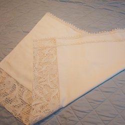 Vit blus med volanger och detaljer i riktig gammal spets/tyll runt halsen och ärmarna. Dekorativa rosetter framtill.