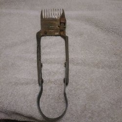 Kaffebrygga, sked, Bärplockare. Trälåda med botten av svängda järntenar (kam). En kortsida öppen och motstående sida av läder