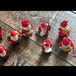 5st Porslins tomtarna som kan hängas i granen. Ca 5cm höga.