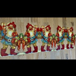 8 st charmiga tomtar som kan användas som julgranspynt. Passar bra i enriset också. . Varje tomte har en röd snodd för upphängning och unika detaljer som gör dem speciella.Höjd ca 4 cm Gott skick
