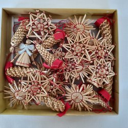 Halmfigurerna kommer i en ask med 10 stycken olika motiv, bland annat änglar, hjärtan och julbockar.