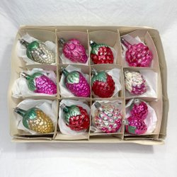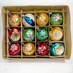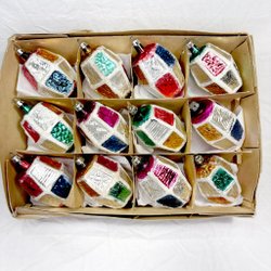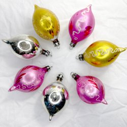 Ett sjudelat set med riktigt gammalt bling till granen! En stor droppe med en reflektor och så droppar där glaset är veckat på olika sätt, vilket speglar ljuset väldigt fint tycker jag - det här är sånt som lyfter ens julgran till nästa nivå (det beror ju så klart på vad man har för övrigt, har man bara plastkulor från IKEA så kanske det behövs mer än bara dessa för att göra en verklig förändring, men ni fattar ju vad jag menar?). Se bilder för skick och detaljer.