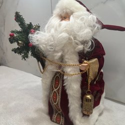 Äldre julkrans i halm med bjällror och julbockar.