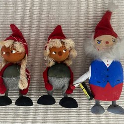 Tre handstickade tomtar.