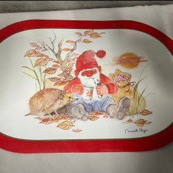 En söt tomtefigur som ligger på en släde och håller i en lykta. Perfekt som juldekoration eller som en charmig detalj i hemmet.