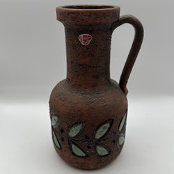 Ja du ser ju själv.. Jag hoppas på att hitta någon som vill ta sig an att fixa till denna, den är ju för fin för att kasta då den varken har nagg lr sprickor. Men en hel del färgsläpp som du ser. H 17cm B 20,5
