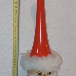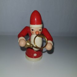 En handgjord trätomte med röd luva och grön jacka. Perfekt som dekoration under julen eller året om.