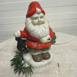 Juldekoration i form av en tomte med inbyggd belysning. Tillverkad i porslin. Höjden är 200 mm och sladden är 200 cm med stickpropp. Glödlampa: E-14 päron liten sockel.