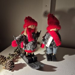 Ett set med två handgjorda tomtar med röda hattar och vita skägg. Perfekt för juldekoration
