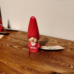 En charmig, handgjord tomtemor i trä, perfekt som dekoration under julen eller som en unik detalj i hemmet. Varje tomte är unik med sin egen karaktär.