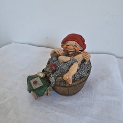 En charmig jultomte figurin. Perfekt för att sprida julstämning i hemmet. Tomten bär på en korg med paket och har en vandringsstav i handen. Höjden är cirka 23 cm.