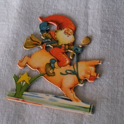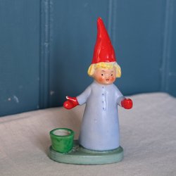 2 små vilda gamla tomtar i porslin, importstämplade.