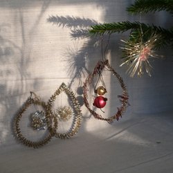 2 gamla små vilda tomtar i porslin som leker i snön tomte julpynt vintage import