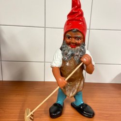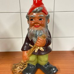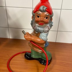 En charmig trädgårdstomte från Heissner Lauterbacher Zwerge med en lykta. Denna dekorativa tomte är en klassisk trädgårdsdekoration som ger en mysig atmosfär. Märkt med 'Made in West Germany'.