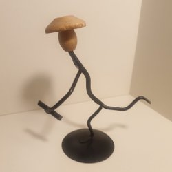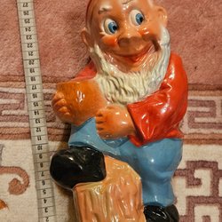 En äldre jul ljusstake i form av en tomte. Den är grön och röd med plats för två ljus.