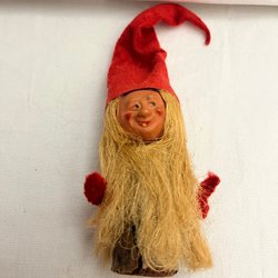 Tomtar 2 vintage,en sitter å en gris den andre har gåstav.