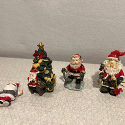 Ett set med fyra juldekorationer. Innehåller två tomtar med röda stickade mössor och två barnfigurer i vinterkläder. Perfekt för att skapa julstämning i hemmet.