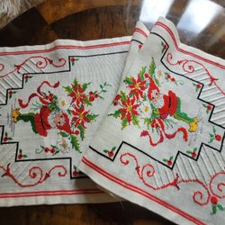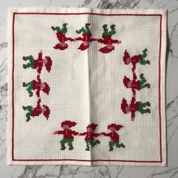 Vacker klassisk Julduk med broderade tomtar ca 37×37