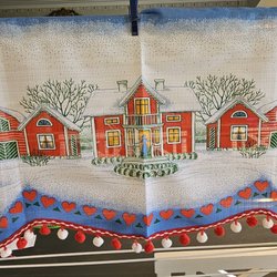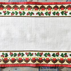 2 längder m omtag, bomull, röda m kvistar o hjärtan o vita prickar m omtag. Kanal.