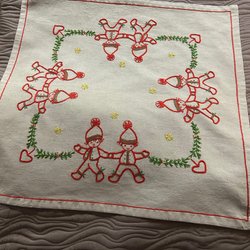 Retro Julduk med ett motiv av tomtar och julstjärnor.