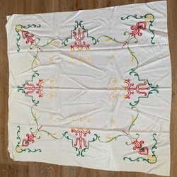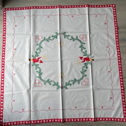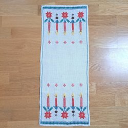 En blå julduk med detaljerat broderi. Perfekt för att lägga till en touch av traditionell charm till ditt hem.