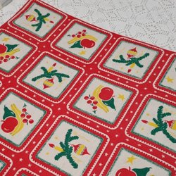 En fin julduk med klassiskt julmotiv. Fina glada färger.