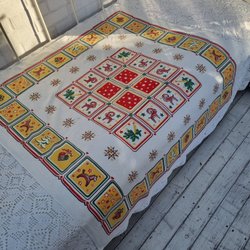 Alla dukar/bonader som jag har till försäljning är vintage och kan ha små skönhetsfläckar eller slitage som kommit med åren. Finns det större fläckar eller andra skavanker så framgår det i min text.