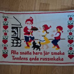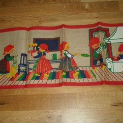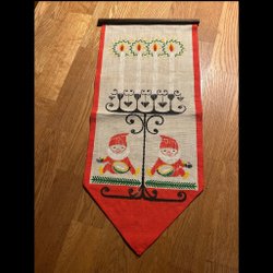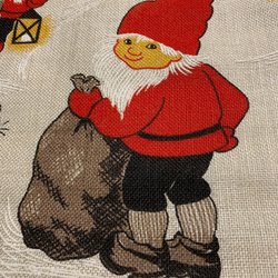 En retro julbonad med ett motiv av tomtar. Perfekt för att skapa en festlig stämning under julen. Begagnat skick Mått19x 69 cm