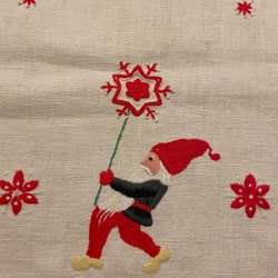 Vintage broderad julduk jul duk med tomte