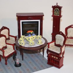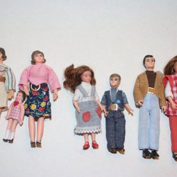 En speldosa i trä med figurer ca 14 cm hög och 14 cm i diam, i fint skick