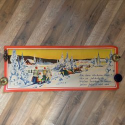 En väggbonad med motiv av tomtar i en vinterskog. Signerad Erik Forsman.