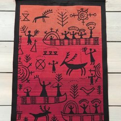 Söt Röd julbricka med motiv av tomtar, i metall! Mått:19cmx16cm! Fint skick! Samfraktar!