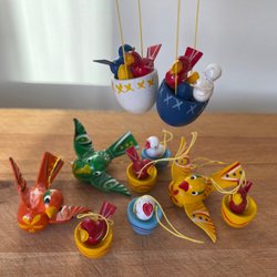 Trä ägg med målade detaljer.handmade 5st se på bilderna