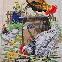 Påskduk med sandfärgad botten och maskinbroderat påskdetaljer i rosa och brunt. Mått 30x70 cm.