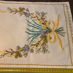 Alla dukar/bonader/kuddar som jag har till försäljning är vintage och kan ha små skönhetsfläckar eller slitage som kommit med åren. Finns det större fläckar eller andra skavanker så framgår det i min text. Utgå från bilderna