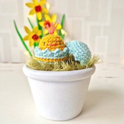 Söt, handgjord virkad kyckling. Perfekt som dekoration eller som en liten påskpresent.