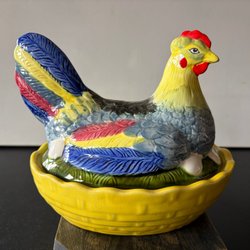 Fin äldre ägghöna i bra skick. Något litet färgskav se bilder. 17x18cm. Locket/hönan går att ta av.